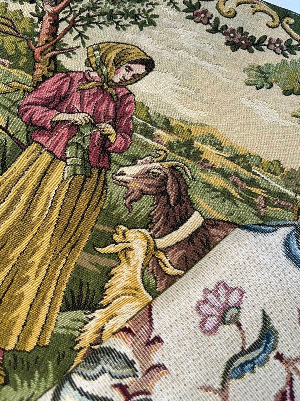 Deze schoudertas, totemodel maat XL, is gemaakt van een prachtige vintage gobelin. De kleuren zijn uniek en nog niet vervaagd. Het weefwerk heeft reliëf en toont de enorme vakkundigheid van de wever.